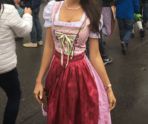 One of the best parts for me was dressing up in the traditional Dirndl dress! I bought this one in Baden Baden and it came with the boob-baring crop top, the dress and the apron. The majority of people are dressed up which makes for a great time! The women's clothes come in all colors however the style is basically the same. I noticed most German girls wore flats for comfort. The guys wear Lederhosen. You don't have to dress up but why miss the opportunity!